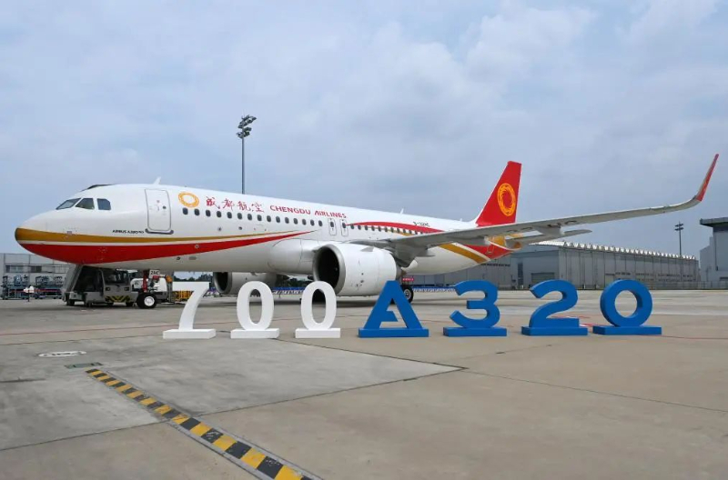 2024年7月8日,位于天津的空中客车A320系列飞机亚洲总装线交付第700架A320系列飞机。新华社记者 李然 摄